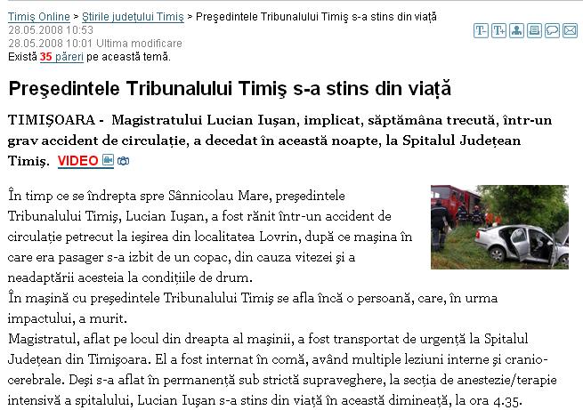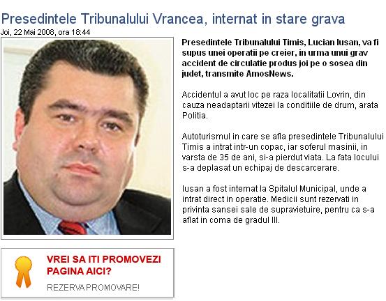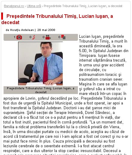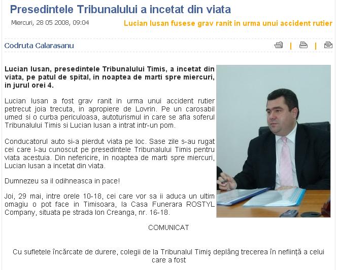 Presedintele Tribunalului Timis, Lucian Iusan, a decedat