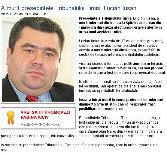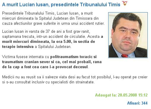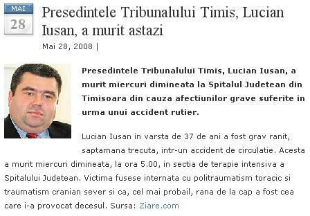 Presedintele Tribunalului Timis, Lucian Iusan, a murit astazi