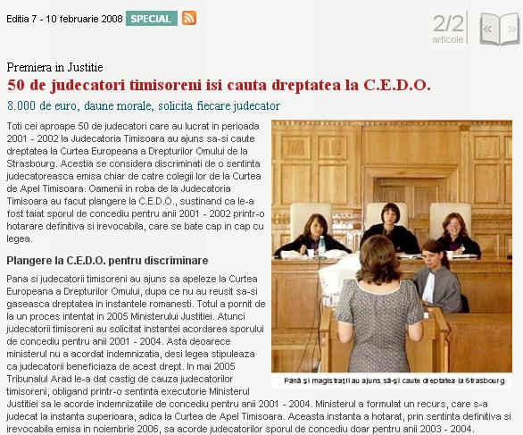 Judecatorii timisoreni reclama Curtea de Apel la CEDO