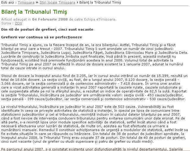 Tribunalul Timis a ajuns, ca la fiecare inceput de an, la ora bilantului. Astfel, Tribunalul Timis si-a facut bilantul pe anul care a trecut - 2007. Tribunalului Timis ii sunt arondate un numar de cinc...